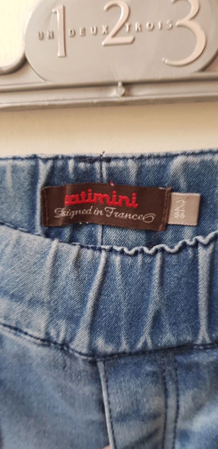 Jean de type tregging, de marque catimini. Taille 2 ans. Bon état, l'étiquette à l'arrière du jean est légèrement abîmée. Voir dernière photo. Petit prix en conséquence