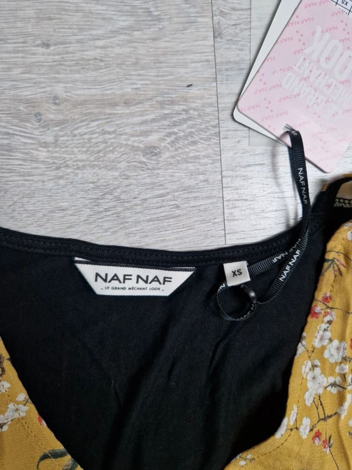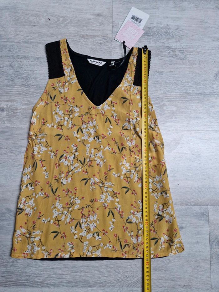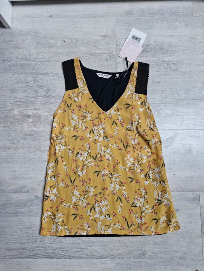 Top Naf naf XS neuf avec étiquette noir et jaune avec fleurs - photo numéro 7