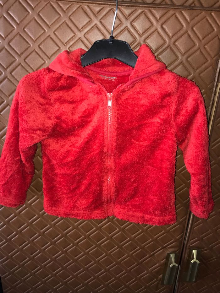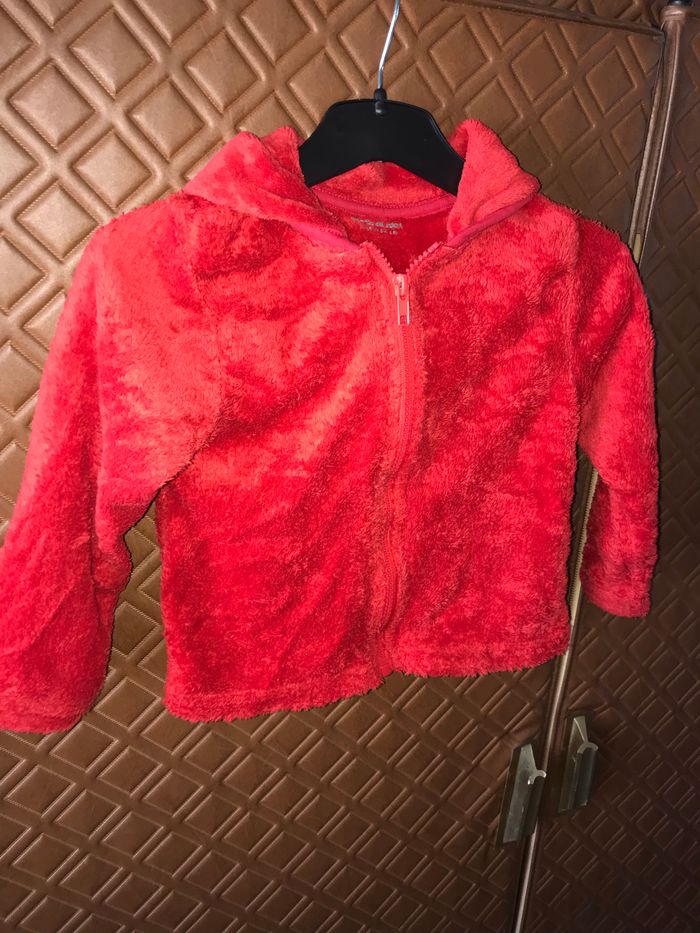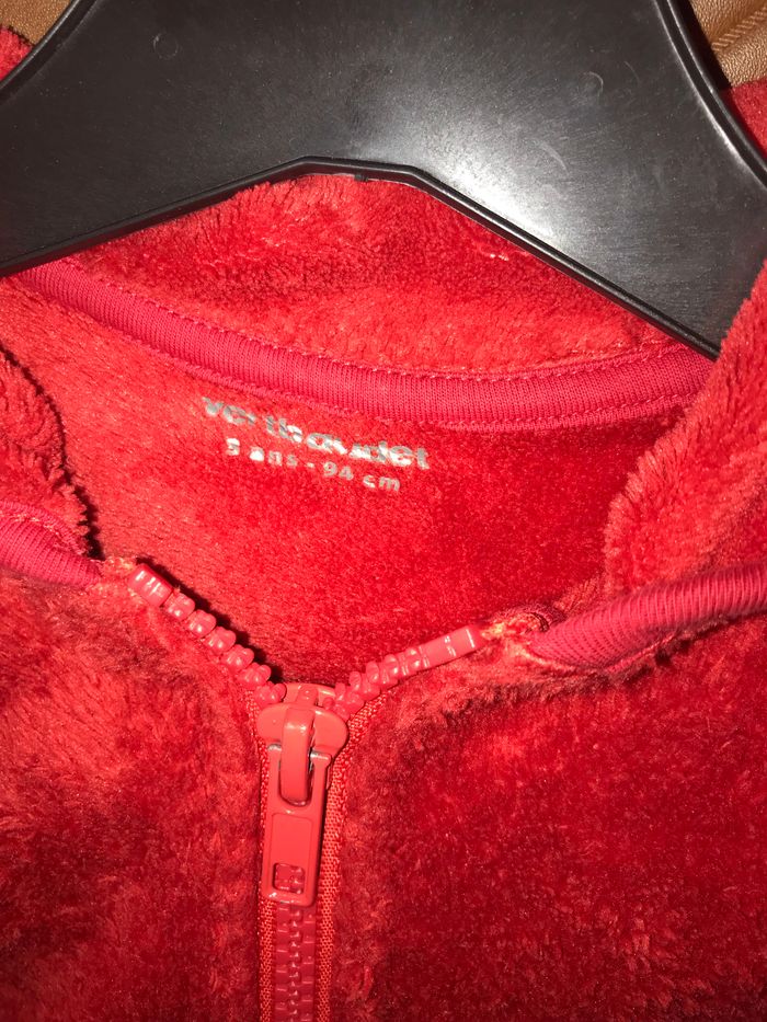 Gilet rouge tout doux pilou pilou à capuche Vertbaudet 3 ans