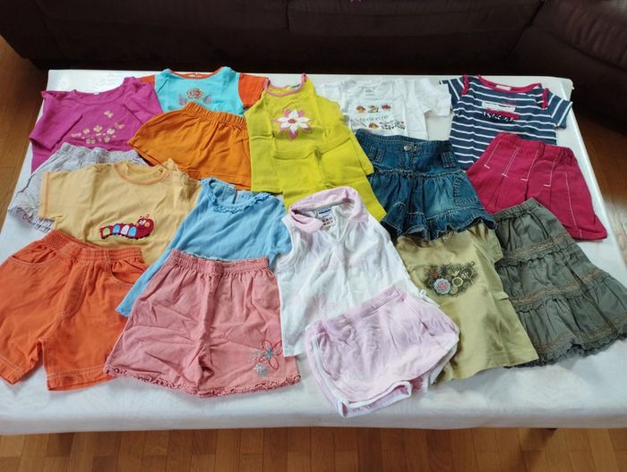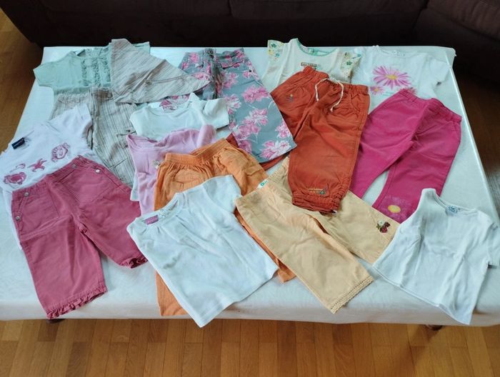 Gros lot été/ mi saison Bon état et état très correct Les petits défauts : T.shirt Tenerife : petit coup de fer sur motif à droite T.shirt Fisher Price : des petites tâches surtout col ( fuite eau où t.shirt stocké) Pantalon compagnie des petits : un trait t.shirt TCF un mini trou Pantalon Okaïdi : petite tâche,façon décoloré T.shirt blanc : moins blanc, à relaver En + des marques déjà citées, Vertbaudet,sucre d'orge, sergent major, tape à l'oeil, Lili gaufrette, Kiabi, catimini,grain de blé, Disney, Gémo, Reebok #charlotte123417fille2ans