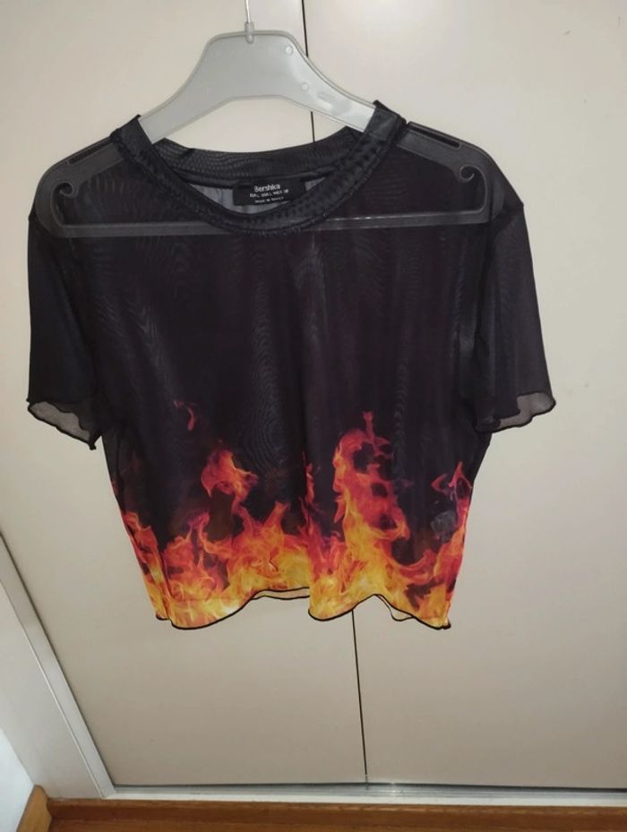 Flamme, transparent polyester elasthane, Bershka, porté 1 fois, L Gris M de chez H&M, peu porté Noir H&M taille L , se porte large épaules dénudées #charlotte123417femmeM38