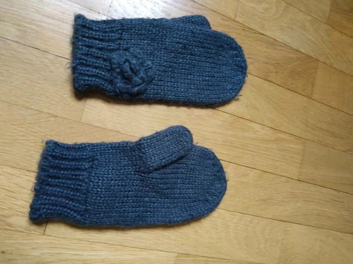 Comme neufs, TRÈS peu mis, quasi non portés Moufles avec jolie fleur Bonnet avec fils argentés Taille unique #charlotte123417accessoires
