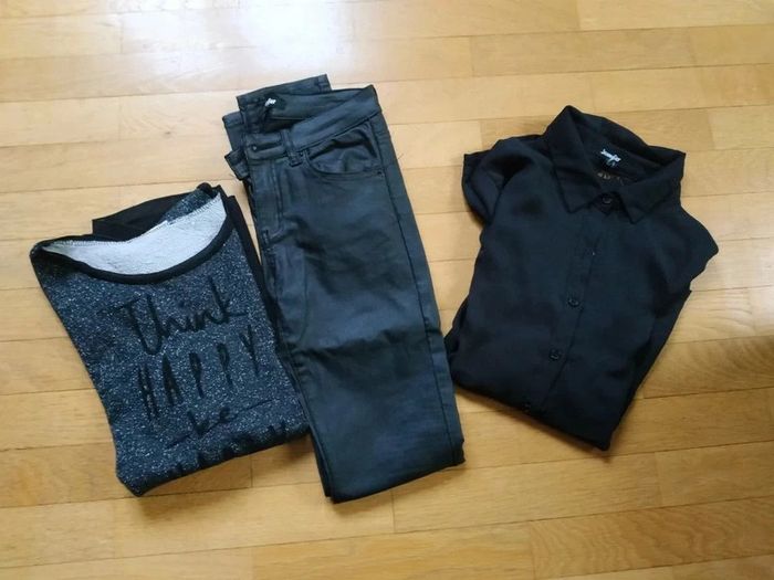 Pantalon Jennyfer 34, étiquette intérieure composition coupée Haut Mim S ,jolies paillettes,bas mousseline ouverture sur les côtés Chemisier Jennyfer S , jolie dentelle dos Tout a été portés 1 fois #charlotte123417femmeXS34 #charlotte123417femmeS36