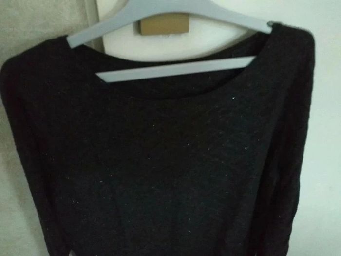 Porté 2 fois Jolis fils argentés. Bas arrondi, très beau pull Gris foncé #charlotte123417femmeXS34