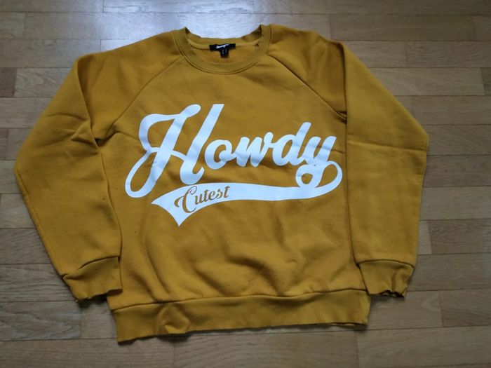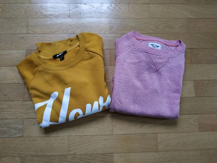 Moutarde Jennyfer , pelucheux, une tâche bas bras D, satisfaisant Rose sweat fin pas molletonné CEDAR WOOD STATE N'EST PLUS À VENDRE #charlotte123417femmeS36