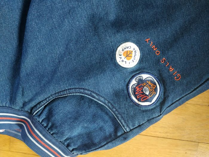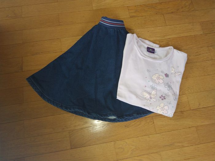 Jupe jean ,fluide, patineuse DPAM ( il y a tee shirt assorti ds dressing en 14 ans, porté ensemble par ma fille, rayures orangées / bleues, rappelle motif bas jupe) Tee shirt sergent major Peu portés #charlotte123417fille12ans