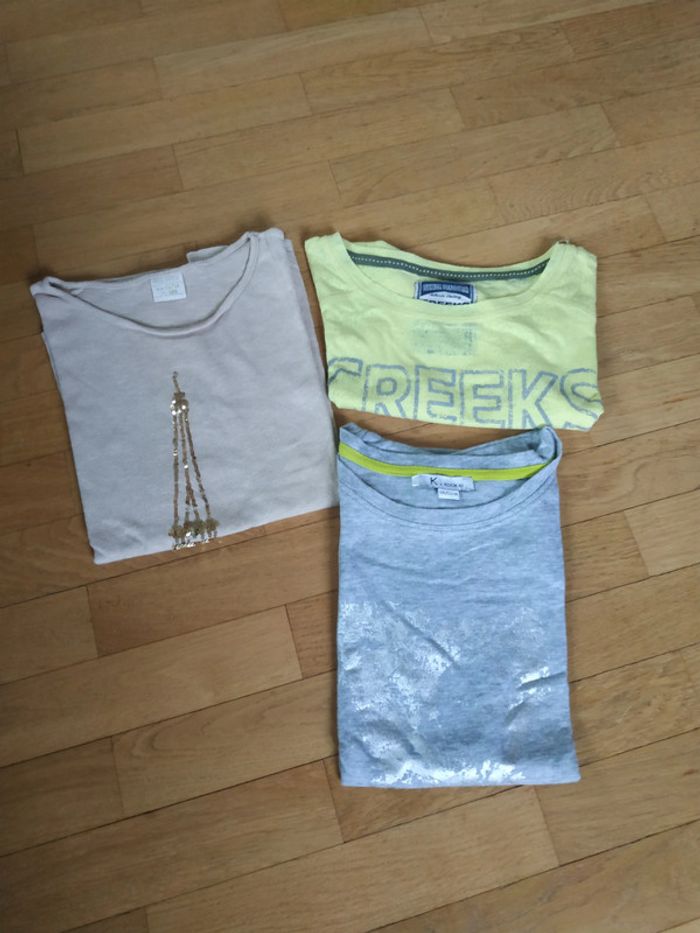 Beige/ ocre; Zara 11/12 ans Jaune : Creeks, court Gris: Kookaï : petites taches sur haut col droit( partent lavage ?) #charlotte123417fille10ans #charlotte123417fille12ans