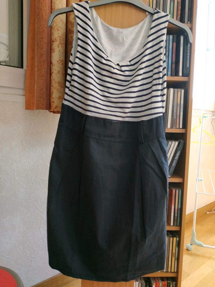 Étiquette coupée 10 ans, bleu marine et blanc bleuté, légèrement pelucheuse #charlotte123417fille10ans