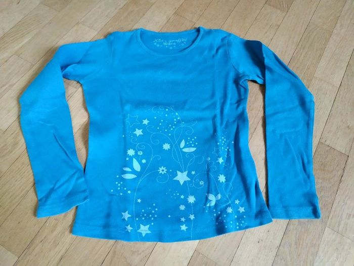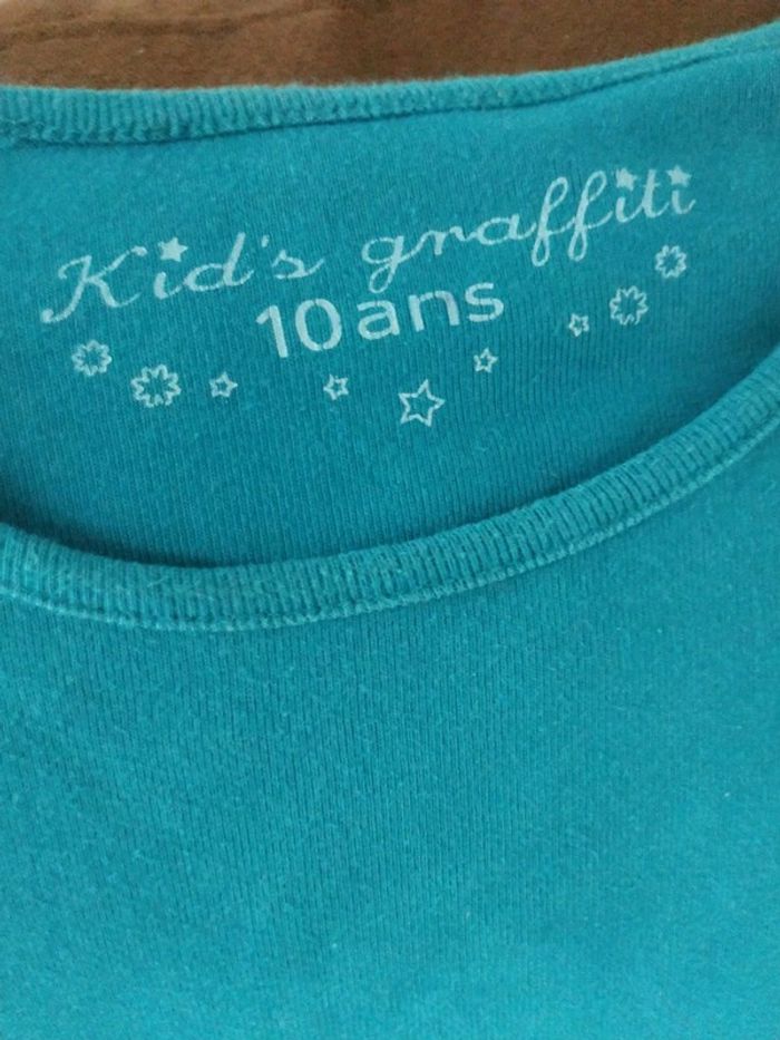 Gilet Kiabi Tee shirt KIDS GRAFFITI, bas manches un peu fanés, bleu canard #charlotte123417fille10ans
