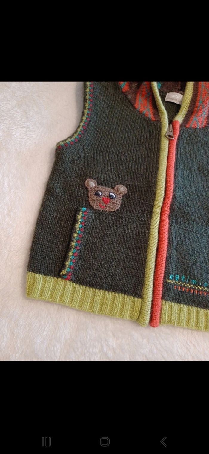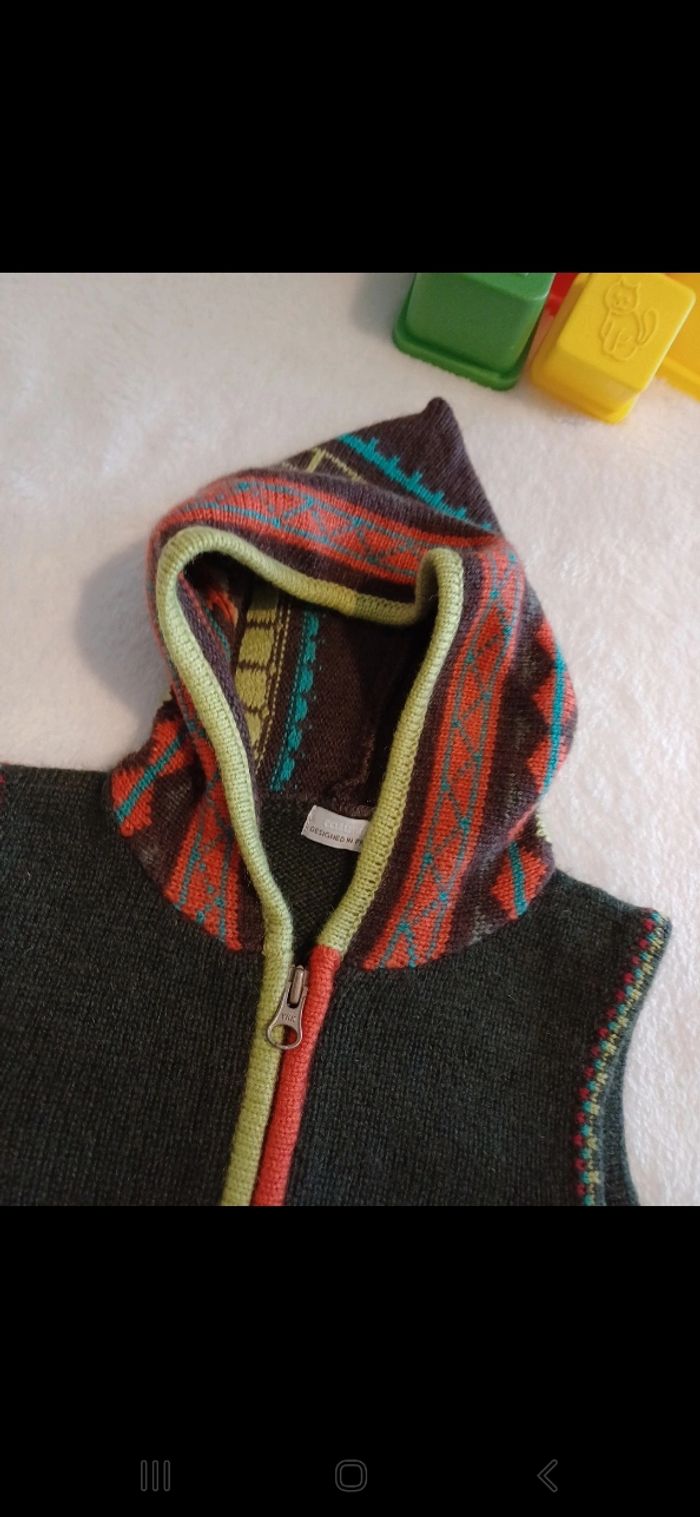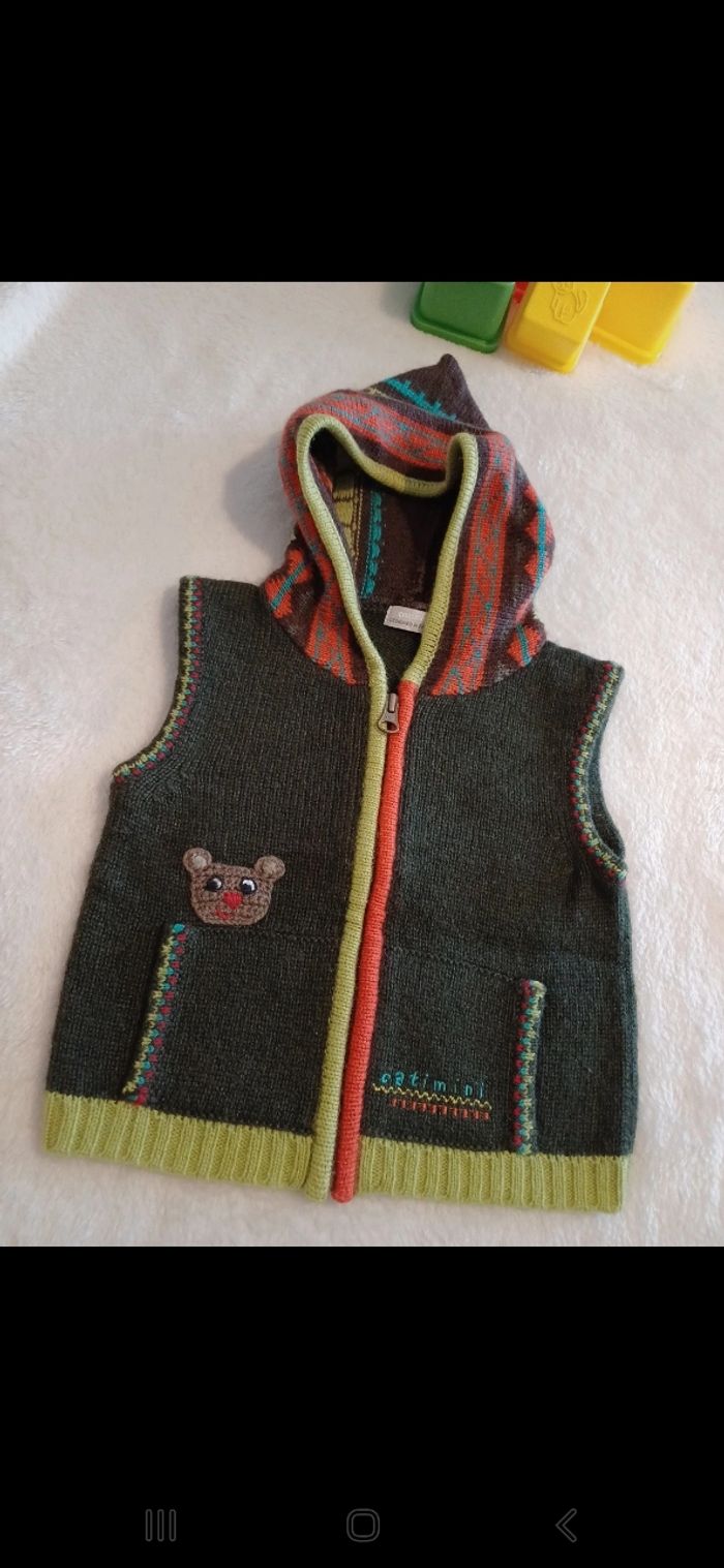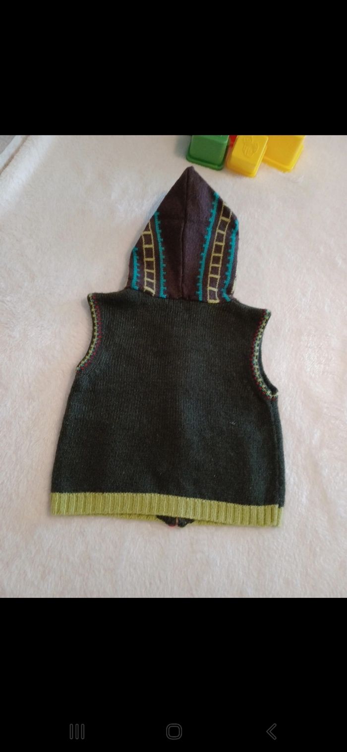 Joli gilet.sans manches, zippé à l avant avec capuche. Deux poches