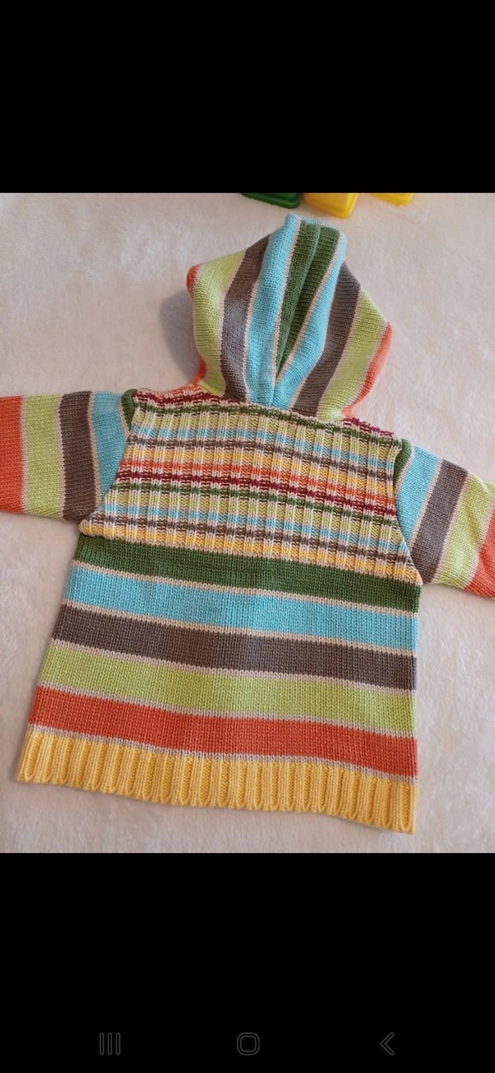Gilet épais zippé à l avant avec capuche. A rayures. En parfait état, neuf