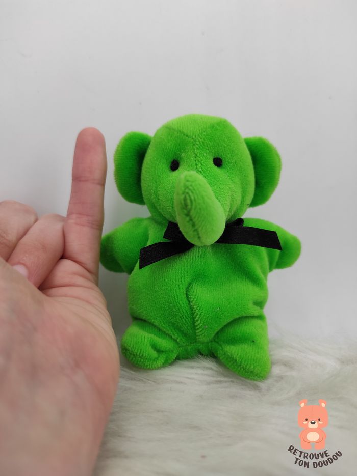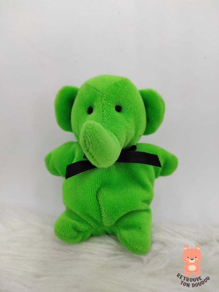 Mini peluche éléphant vert ruban noir - photo numéro 1