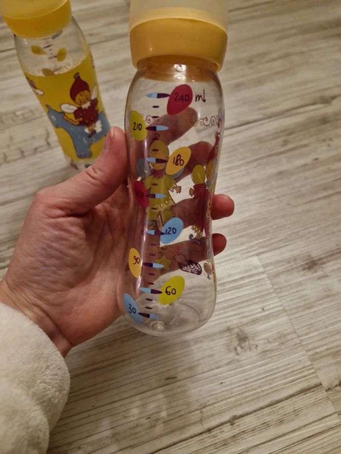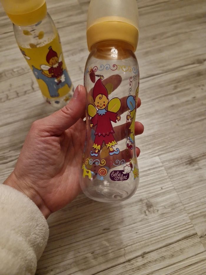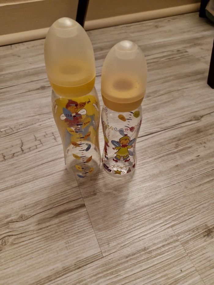 Lot de 2 biberons sans tétine marque bébé confort . Quelques petites traces sur les dessins