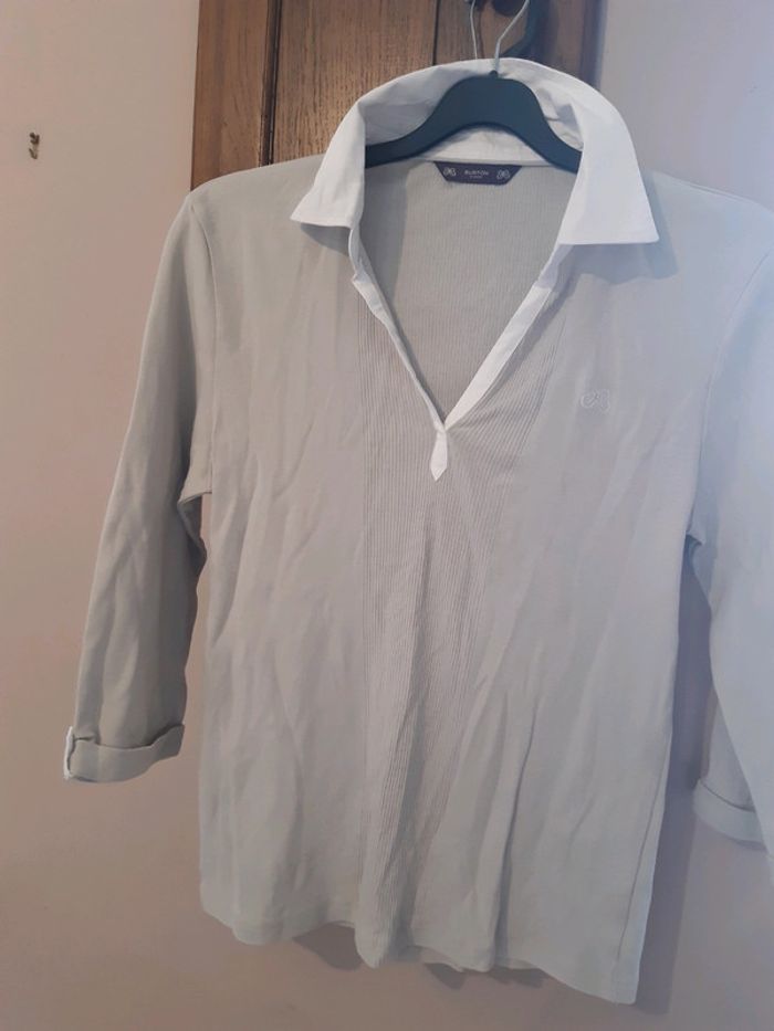 T shirt polo manches longues bouton excellent etat  gris beige taille L - photo numéro 8