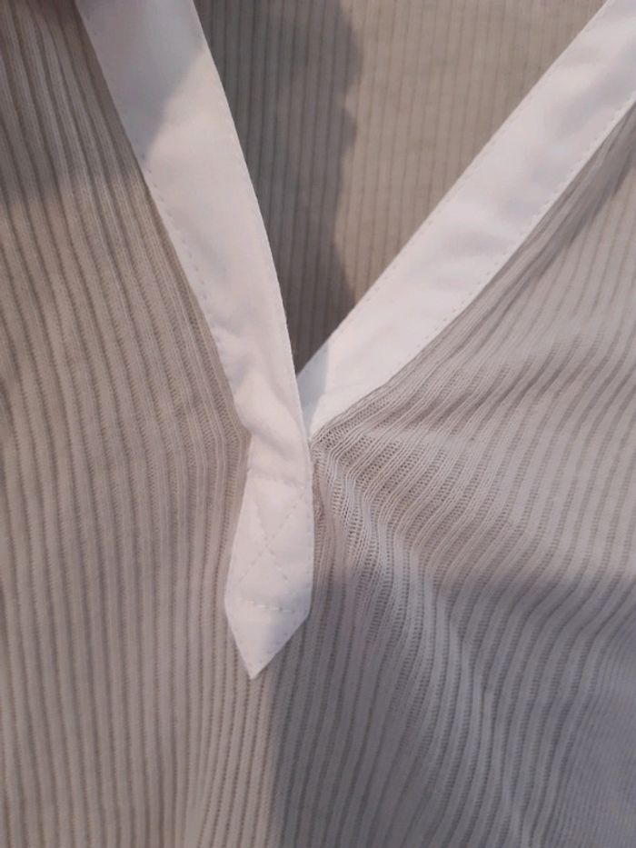 T shirt polo manches longues bouton excellent etat  gris beige taille L - photo numéro 7
