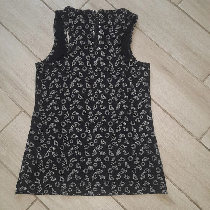 Débardeur noir motif diamants et couronnes argentés