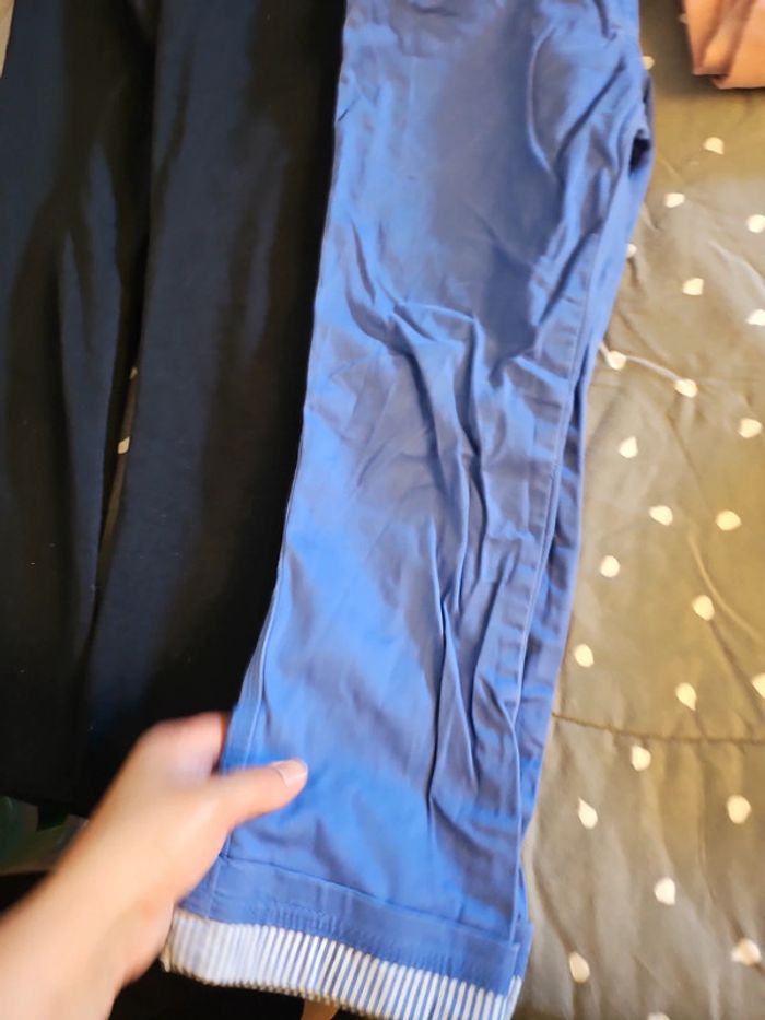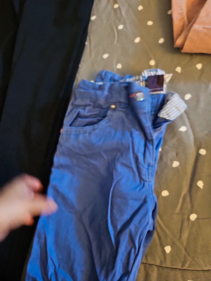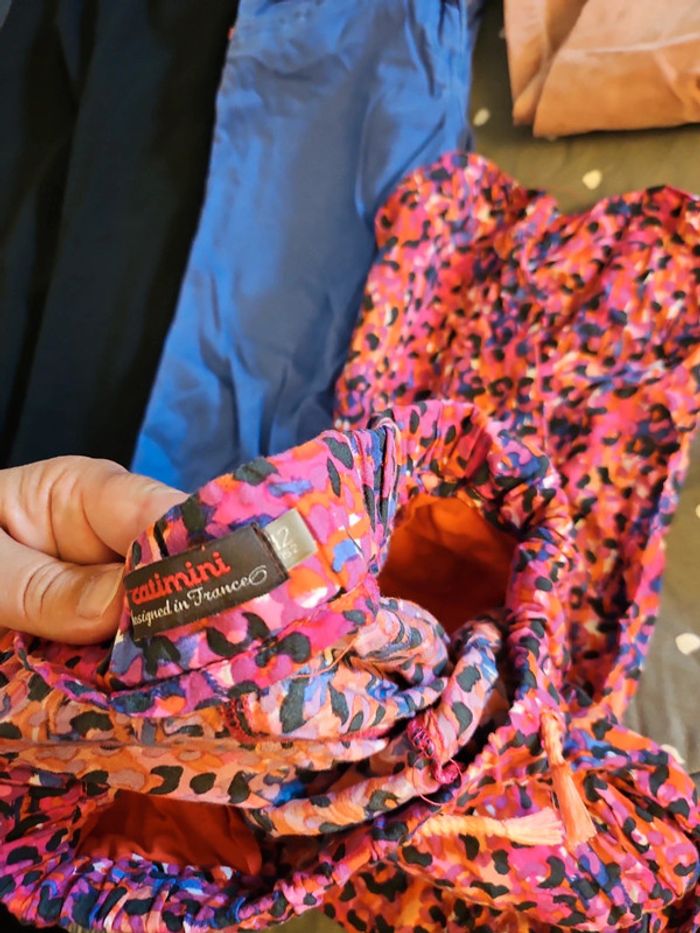 Un jacadi fluide et slim 15 e Un catimini velour rose 10 e Pantalon court Sergent major 10 e Deux pantalons fluide tres doux dont un catimini et l'autre sans étiquette 10 e les deux Lot 40 e