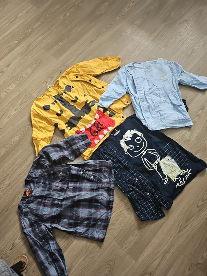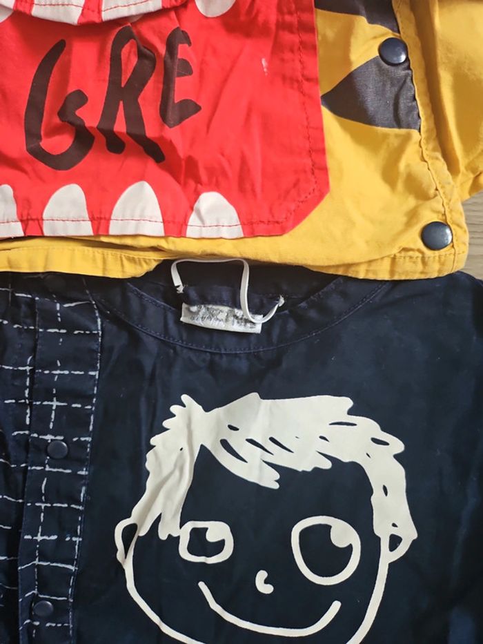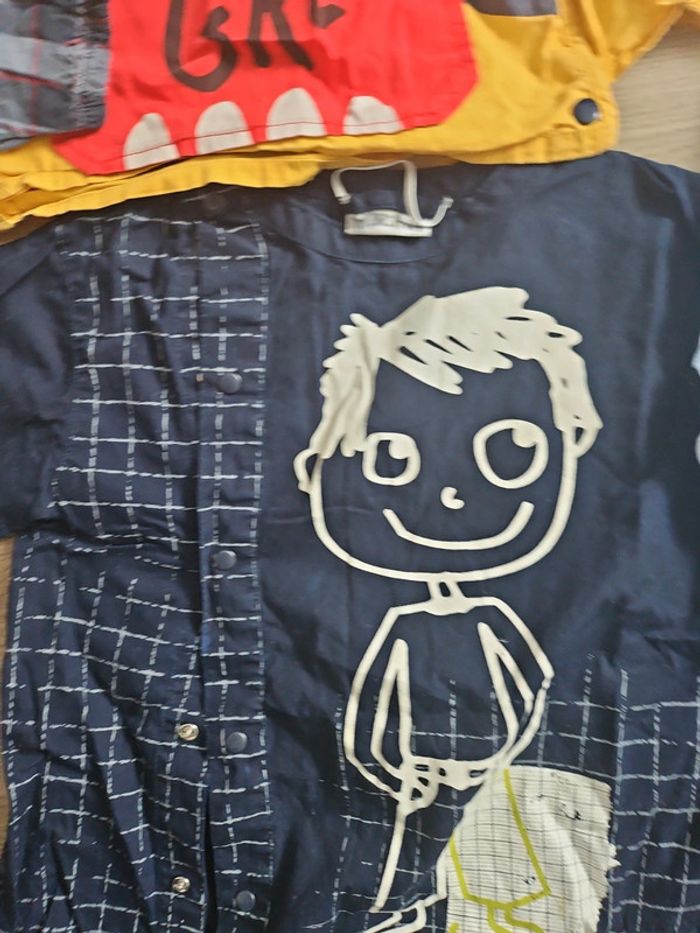 Taille 3 ans Mixte pour certaines sinon garçon En tres bon etat ( tape à l'œil, jacadi ( étiquettes coupée, cfk,de pareil au même) Trace possible sur la jaune sinon très bon état , idéal traveaux de peinture, loisirs, écoles... Le lot 15 e