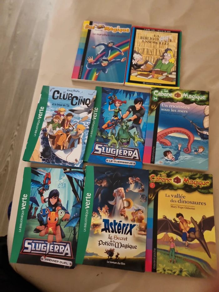 Lot de 8 Bibliothèque verte lot de 4 ( asterix , siugterra, club des cinq) La cabane magique 1 et 34 Le bus magique La Bibliothèque ensorcelée 2 e pièce ou 15 e le lot Idéal cadeau 🎁