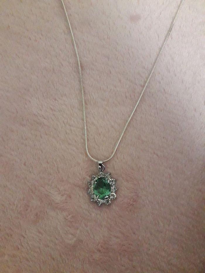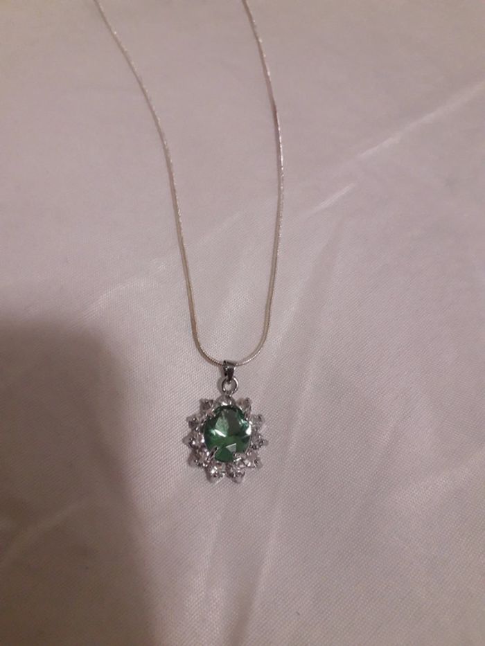 Collier en argent 925 Pendentif avec des Pierres argenté et verte