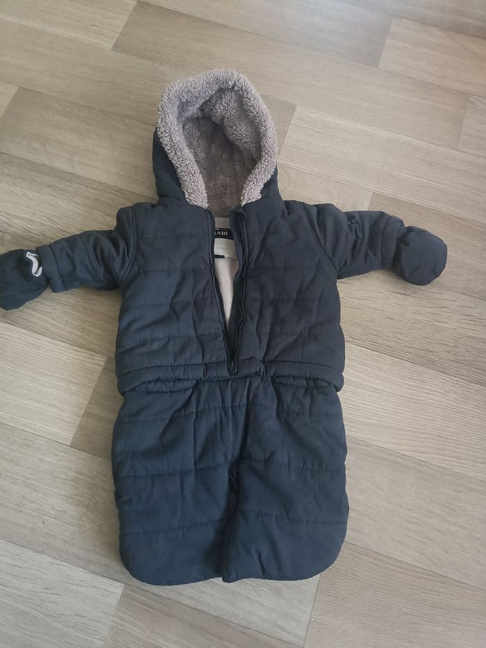 Tres bonne état sa fait combinaison et manteaux taille 3 mois marque Kiabi le bas et les gants peuvent s'enlève