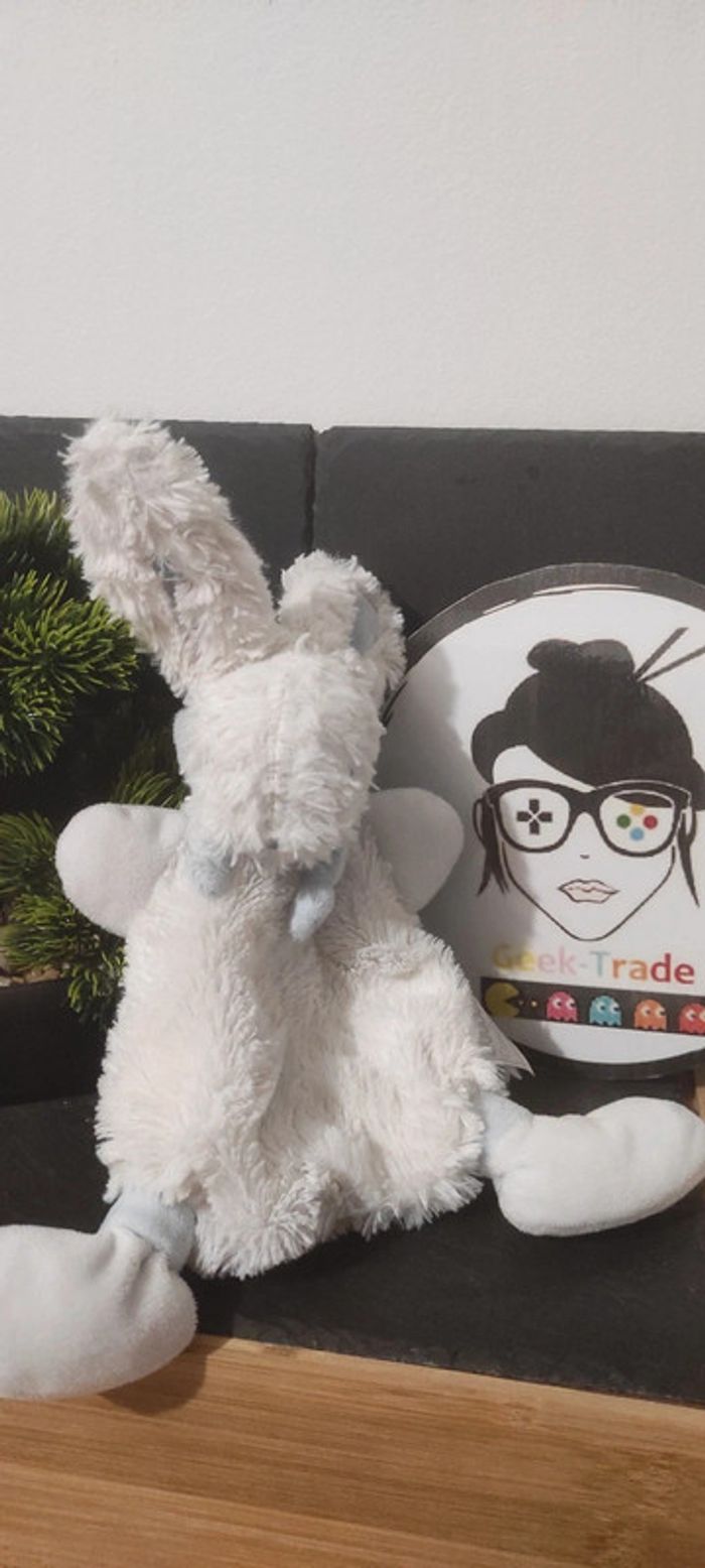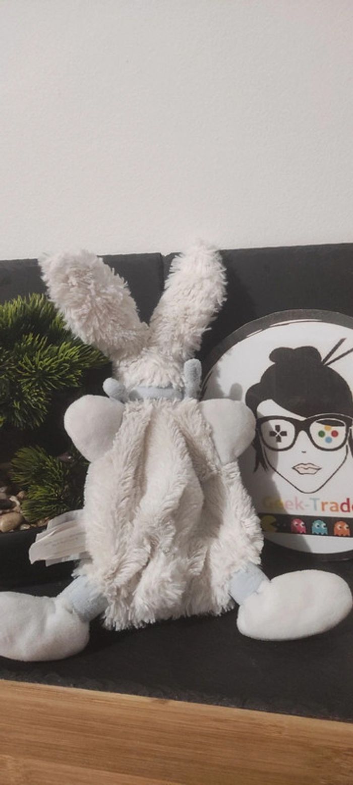 Doudou et compagnie lapin Bonbon plat blanc bleu dc2121 Noeud Écharpe Fourrure  DD001221 Bon etat Il a été pas mal utilisé Afin de ne pas abîmer les doudous et de laisser le choix dans l'utilisation de la lessive les peluches ne sont pas lavées avant envoi Description complément : Petit nettoyage à prévoir Vous achetez ce que vous voyez les photos font entièrement partie de la description #geektradedoudouetcompagnie Transport : Les frais de transport comprennent les frais du transporteur ainsi que l'emballage pour protéger au mieux votre achat. Chaque achat est envoyé en format colis avec numéro de suivi Le poids du colis est de 500g finit (je ne peux pas faire moins) il peut donc y avoir plusieurs objets dans le carton si vous le souhaitez (contactez moi afinde grouper les frais de port) Référencement : #geektradedoudou #peluche #plush  #doudou #enfant #bebe