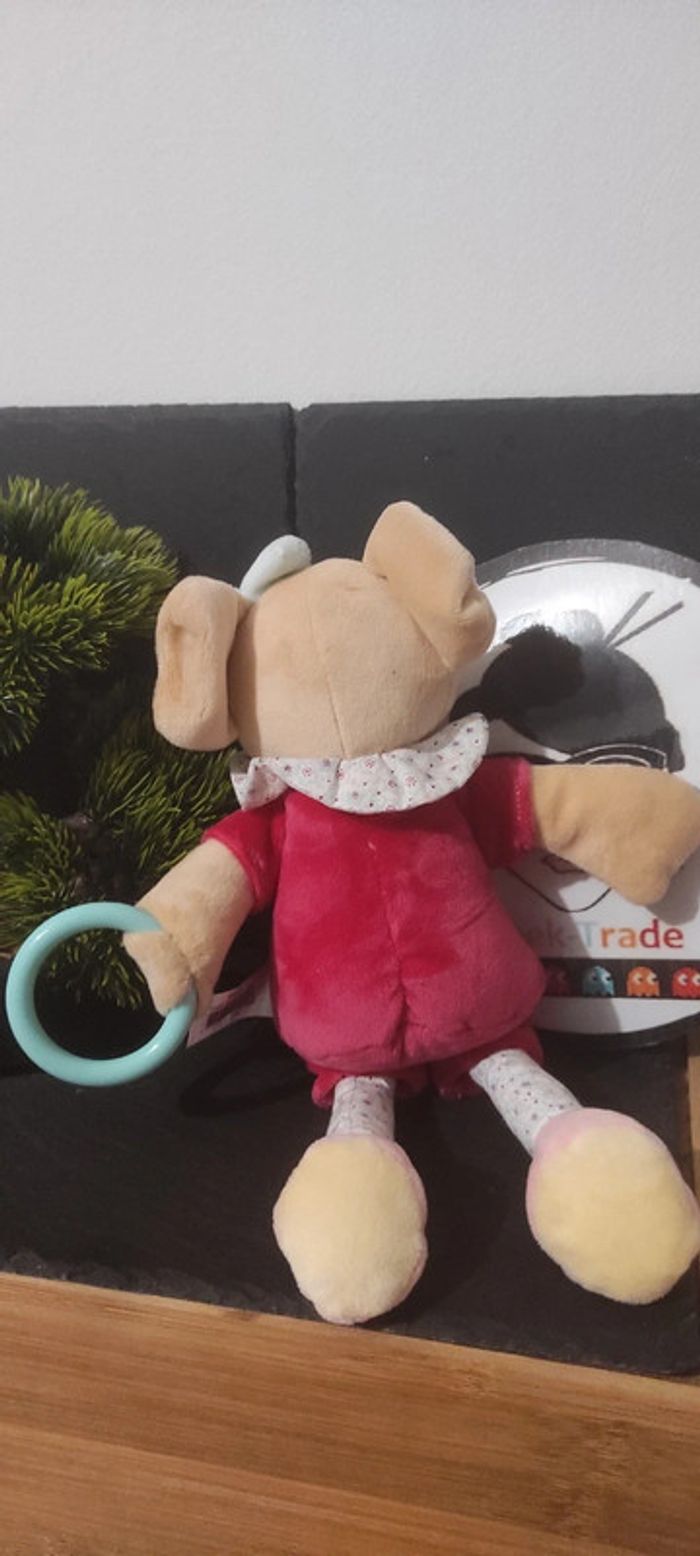 Peluche souris d'activité Rosie Baby Nat pouet bn262 rose robe marron noeud - photo numéro 1