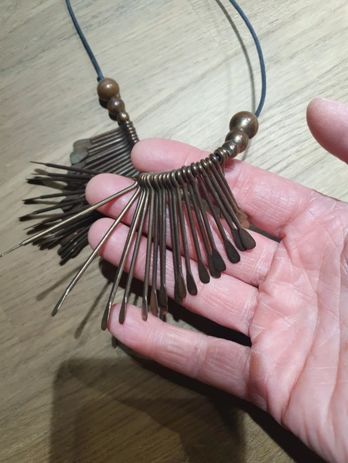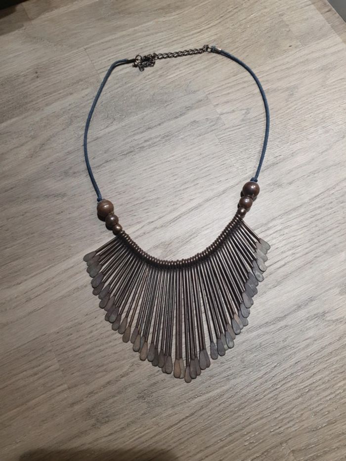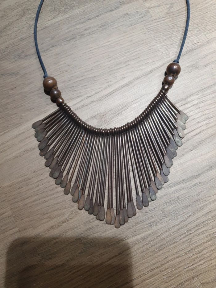 Bien sur il n'est pas en or ! C'est juste couleur or laiton et collier corde noir. Fait son effet 😉 Variable entre 46 et 50cm. Fermoir intact
