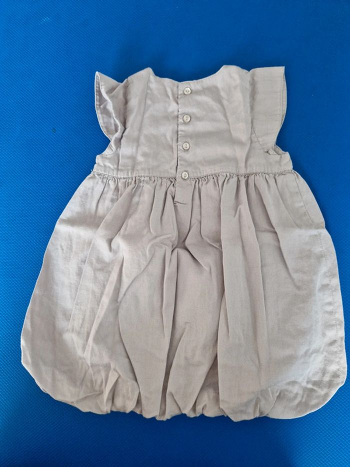 Robe gris perle, assez chaude car doublée. Broderies argentées. Tissus très doux. Très bon état. Idéale pour les fêtes de fin d'année, Noël, jour de l'an...