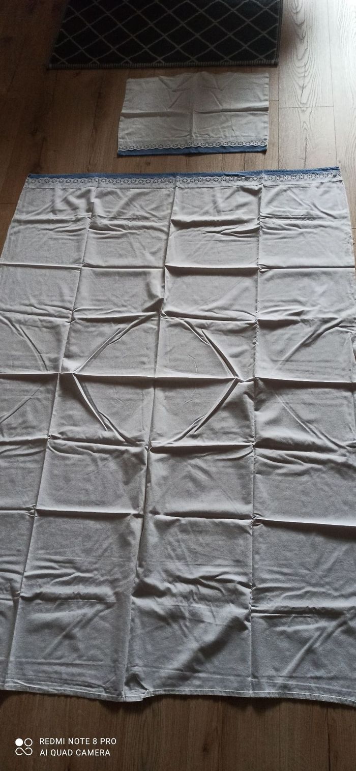 Vends un drap plat et une taie d oreiller blanc et bleu imprimé pour lit bébé