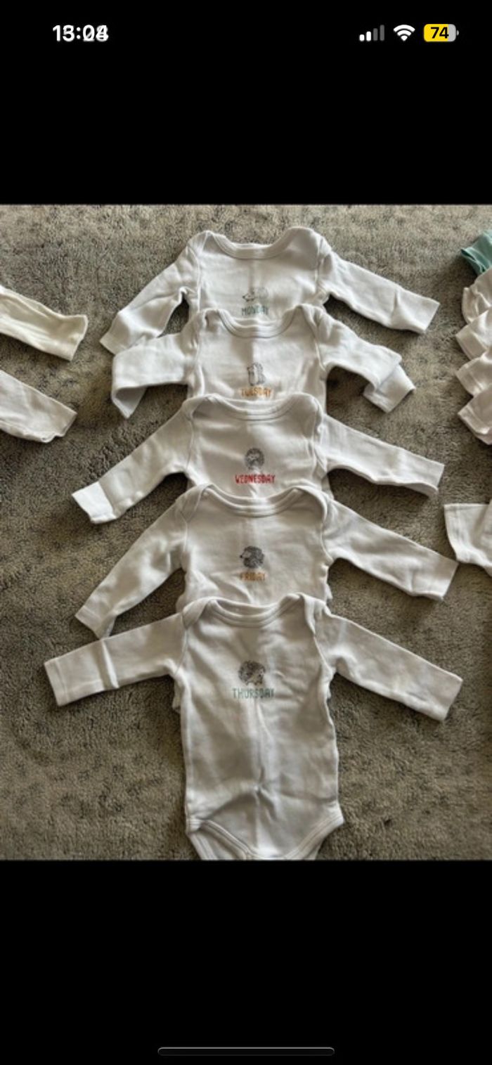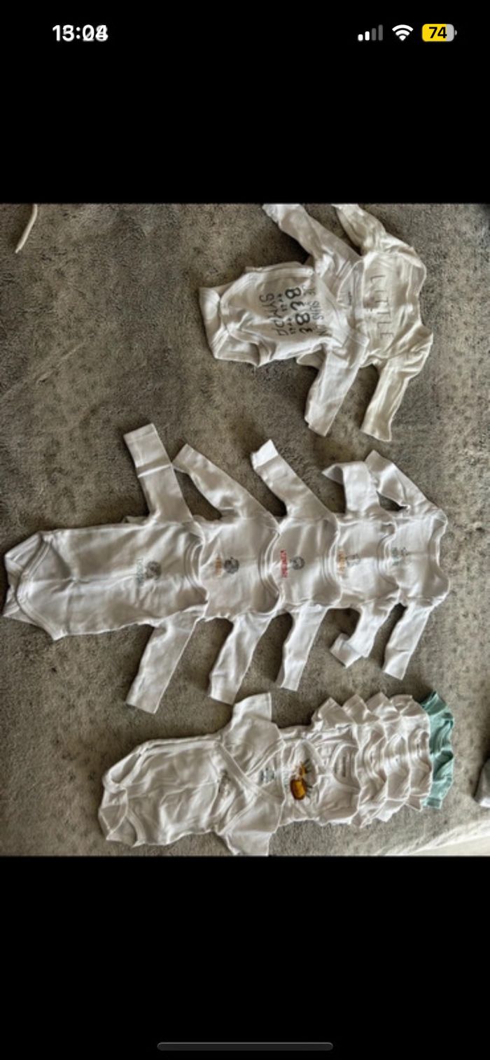 Vend lot de 13 bodies 7 bodies manches longues 6 bodies manches courtes Tout en très bon état et lavés