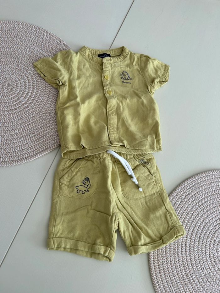 Ensemble short et chemise manche courte avec petit dinosore. Taille 6 mois.