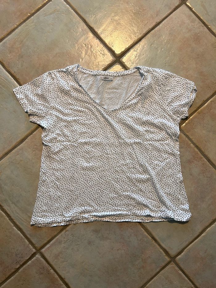 Tee-shirt basique femme blanc pois noirs