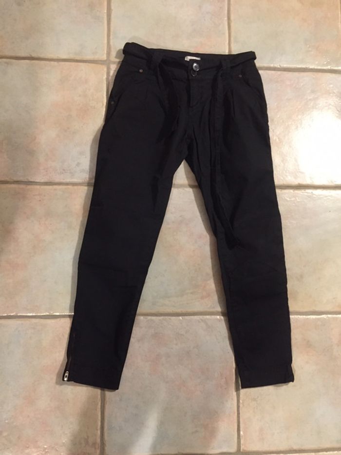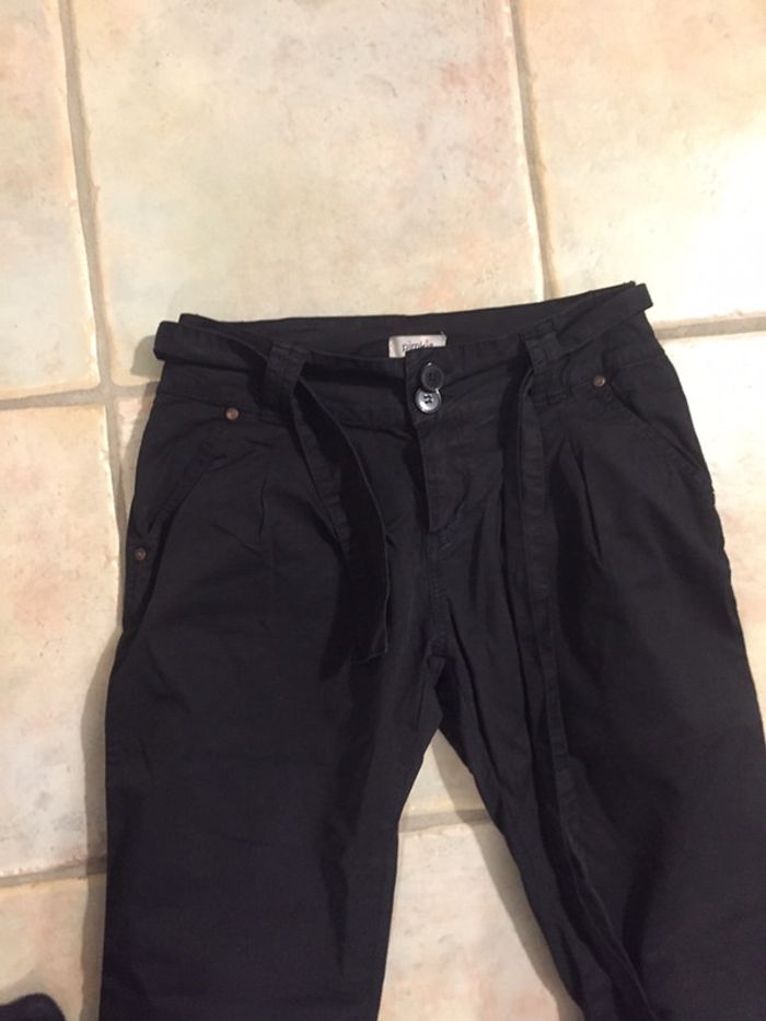 Pantalon taille haute noir avec ceinture et fermeture aux jambes