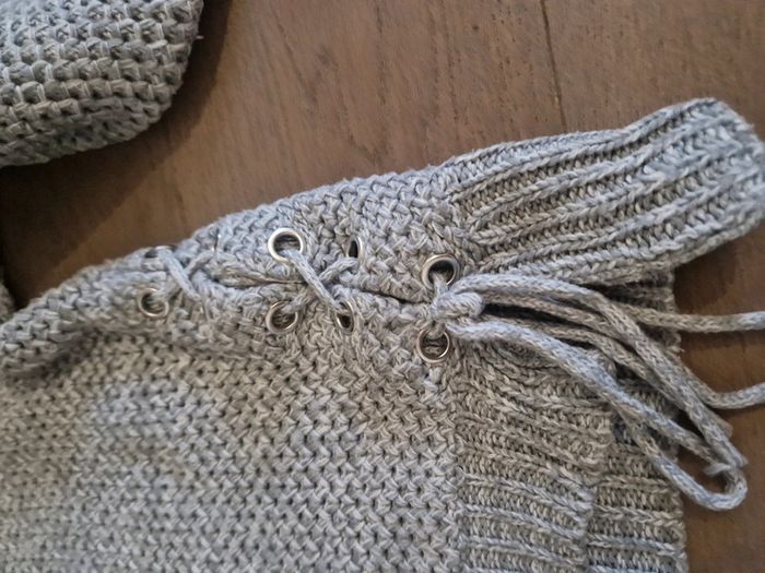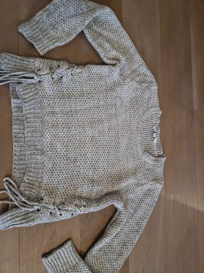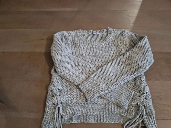 Pull gris , col rond avec noeud sur les côtés - photo numéro 1