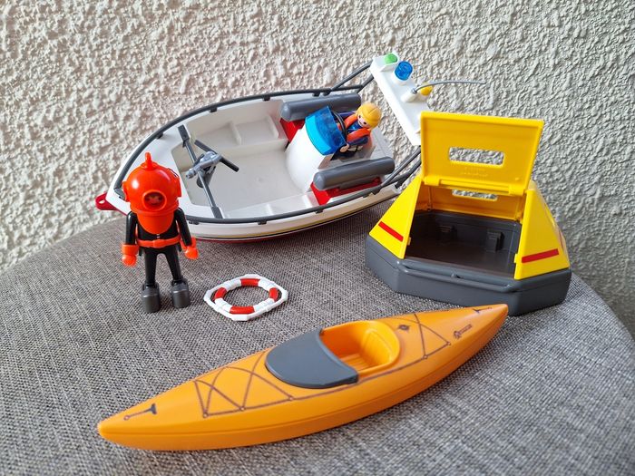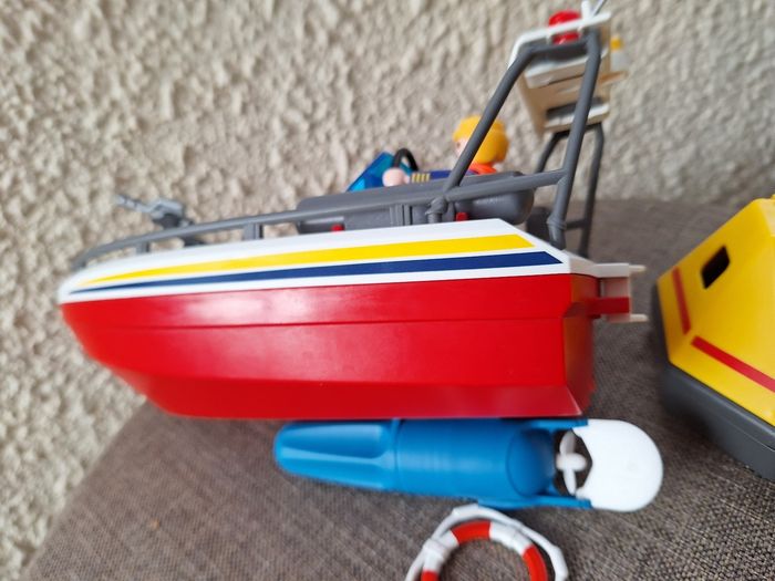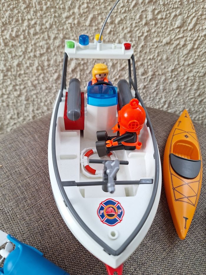 Bateau de secours playmobil avec le moteur qui fonctionne à piles.