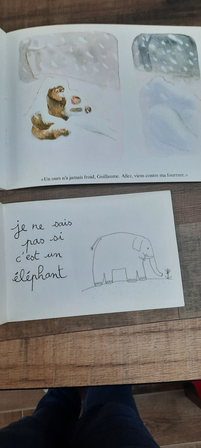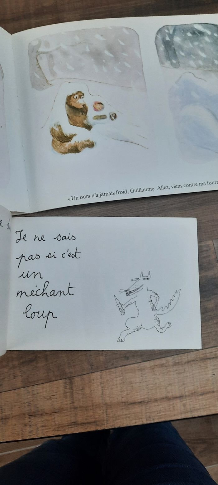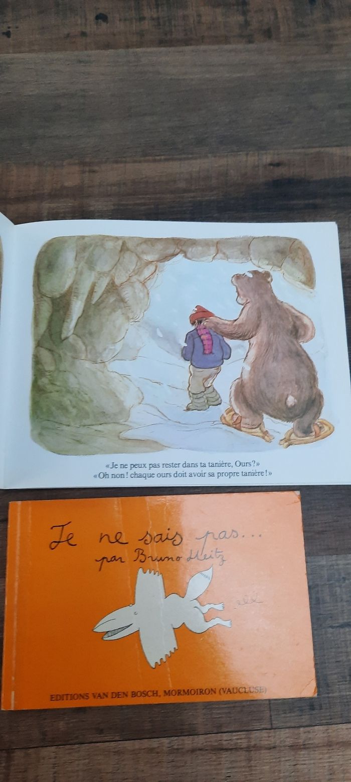 2 livres:" l'abominable Guillaume des neiges" et "je ne sais pas ". Les pages sont en très bon état mais la couverture du livre orange est marquée et il y a du blanco sur la 1ere page du livre avec l ours et l arrière un peu jauni (cf photos). Ce sont de très vieux livre donc vu leur nombre d années ils ne sont pas si mal.