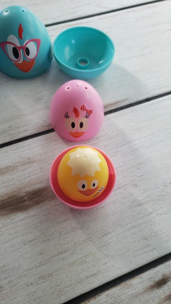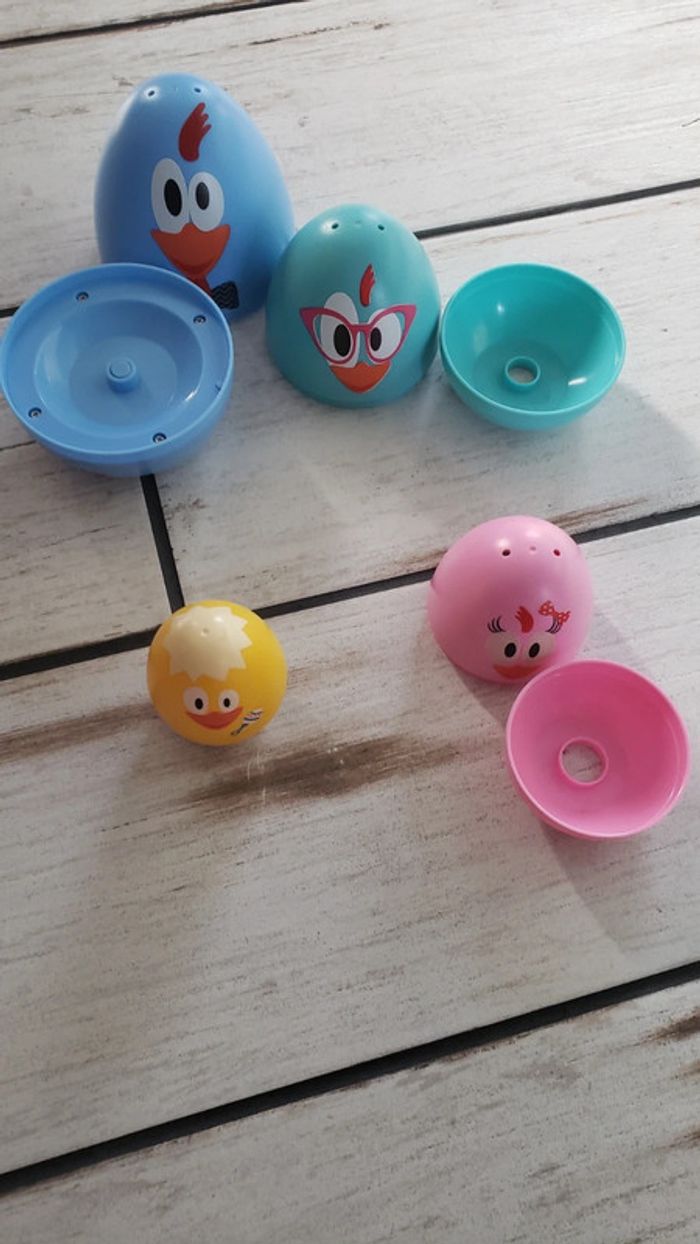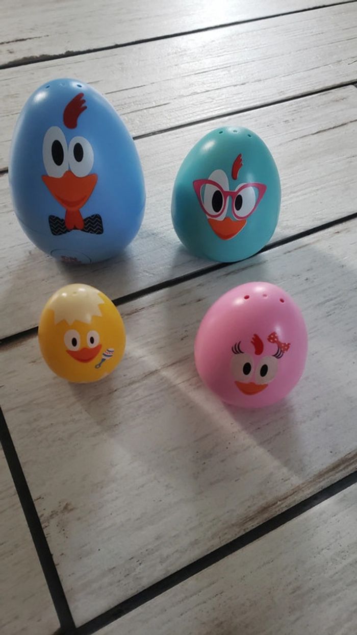 A vendre jouet en très bon état. Chacun des œufs se met dans un autre comme des poupées russes. Le père dit des mots et chante