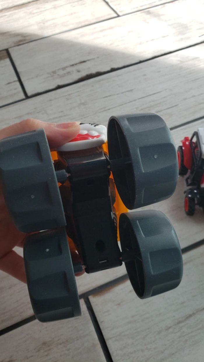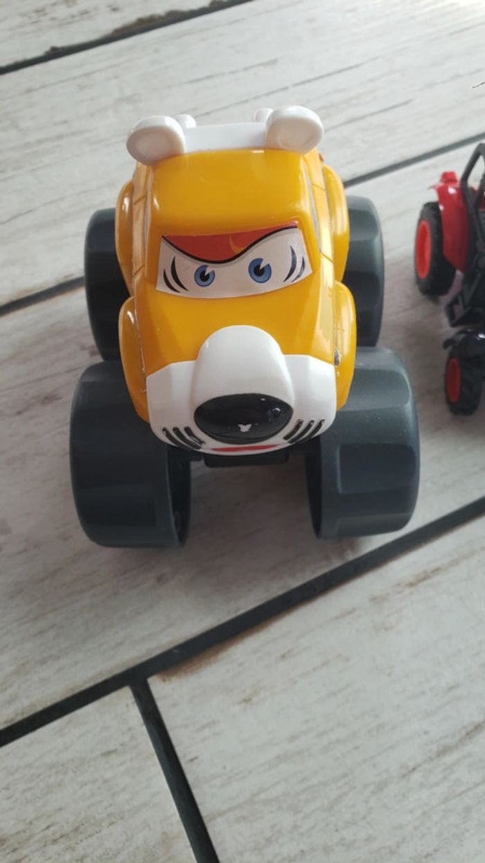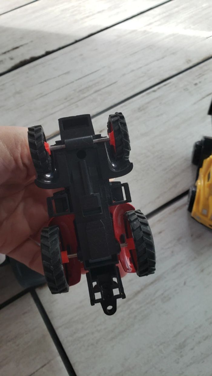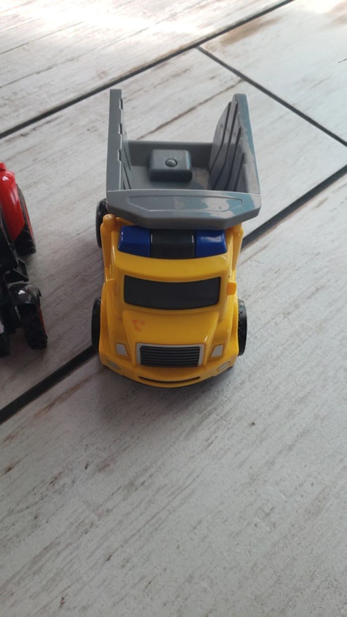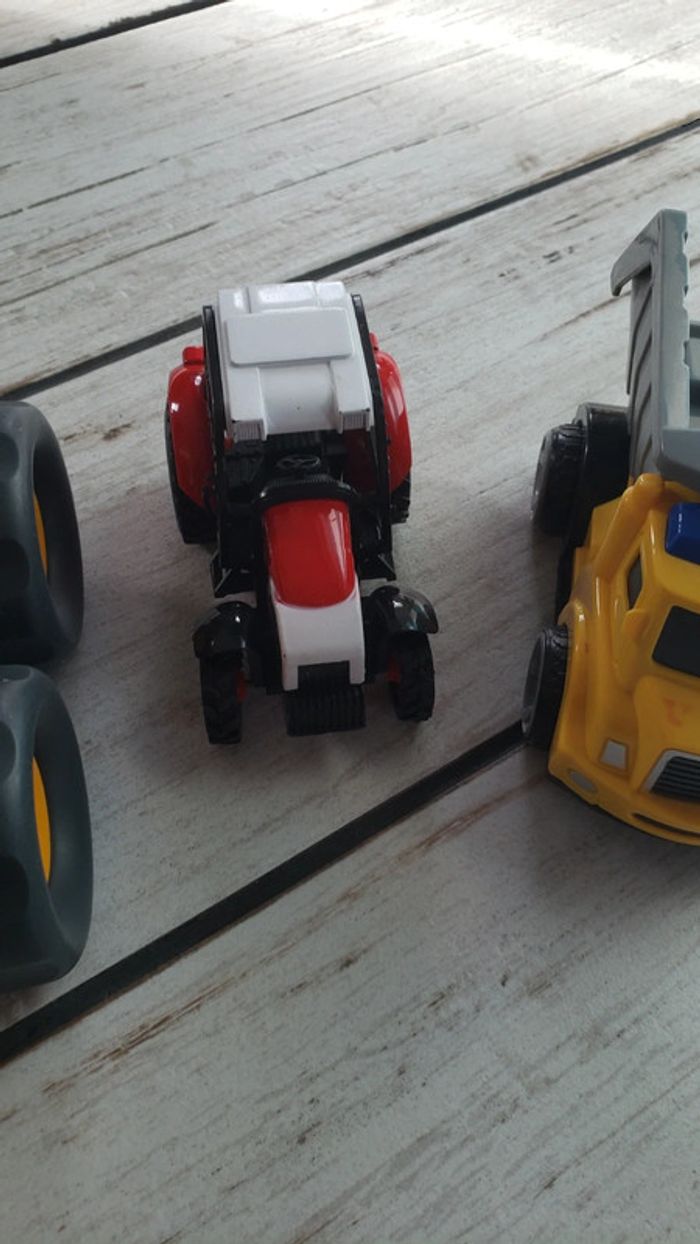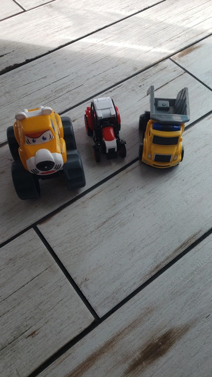 A vendre 3 véhicules en très bon état. Le petit camion avec la remorque a des roues à traction qui le font avancer en avant et en arrière