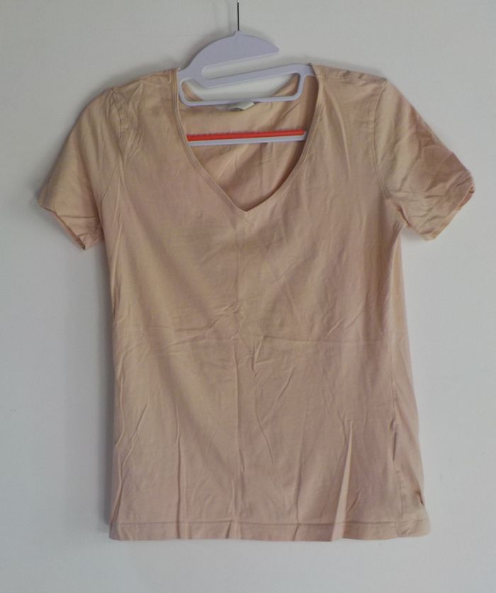 TSHIRT H&M TAILLE M COL V BEIGE - photo numéro 1