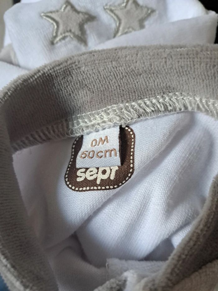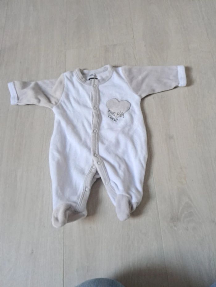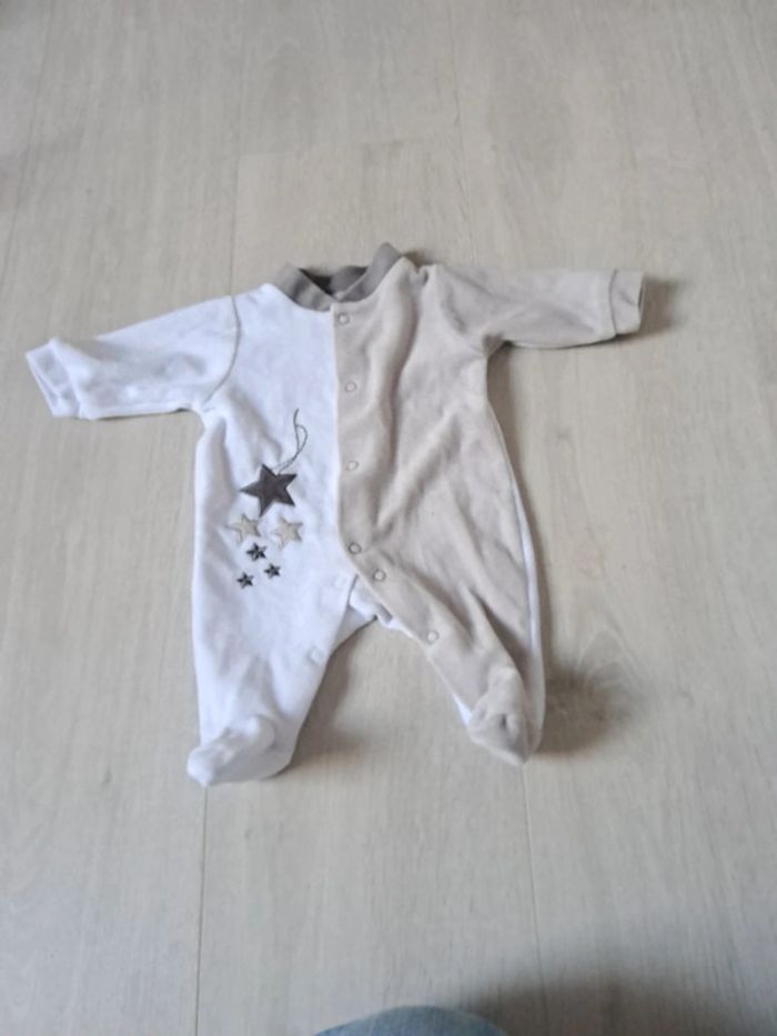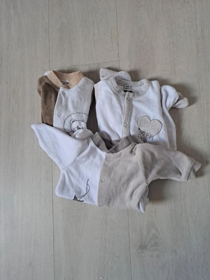 Lot de 3 pyjamas taille naissance 50cm , marque : 3 kilos sept , ils n'ont pas été mis car bébé trop gros à la naissance mais ont été lavé