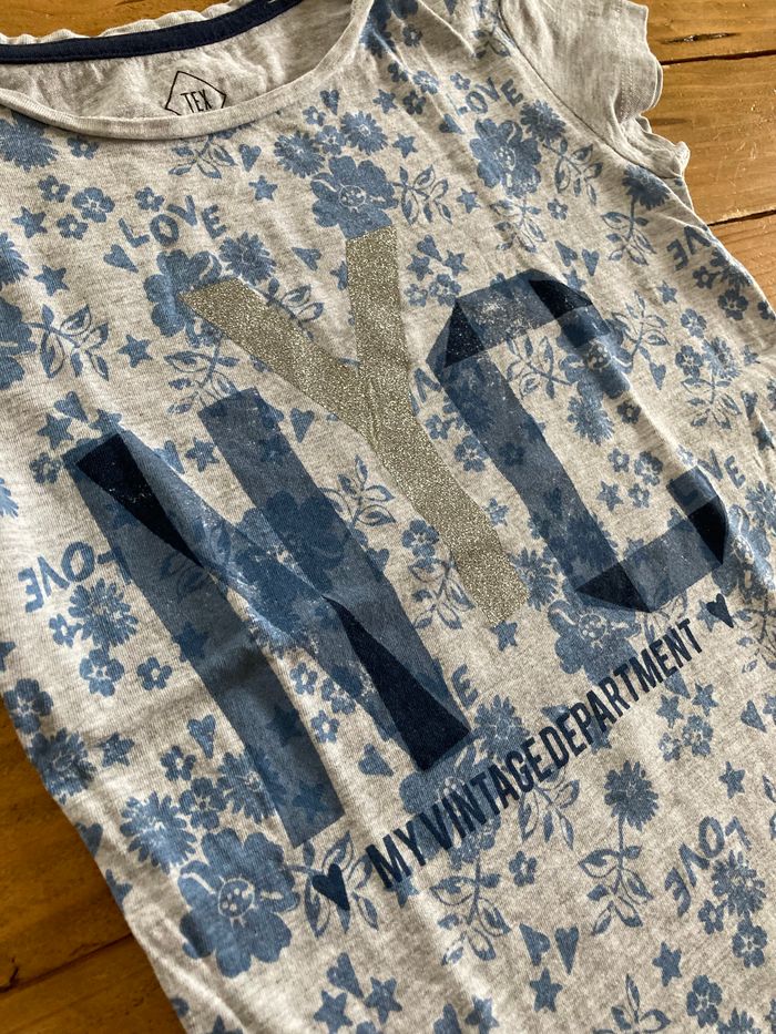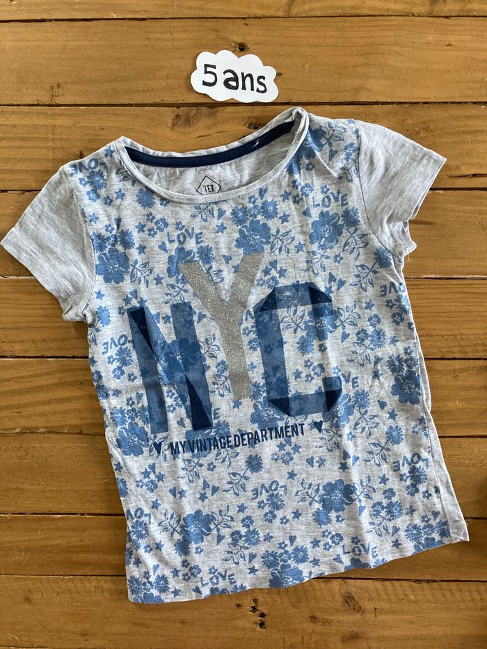 Tee shirt - Marque(s) : tex - Taille(s) indiquée(s) : 5-6 ans - Y pailleté - Très bon état même excellent : pas de trou ni tâche, étiquette intérieure coupée