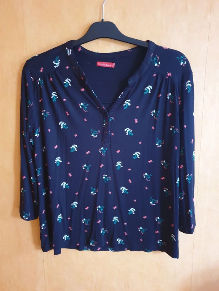 Tee-shirt noir en viscose Manches trois quarts Peu porté Très bon état Largeur d'aisselle à aisselle 52 centimètres Longueur 62 centimètres