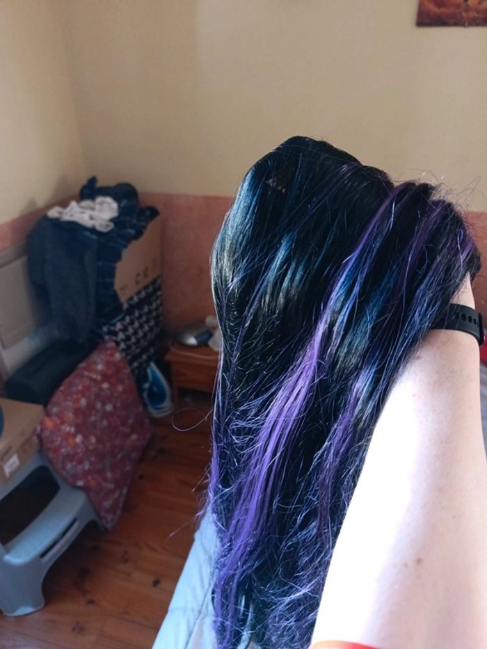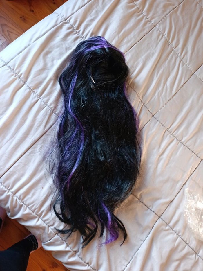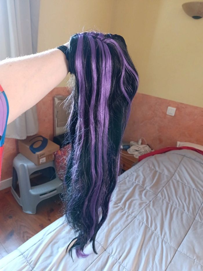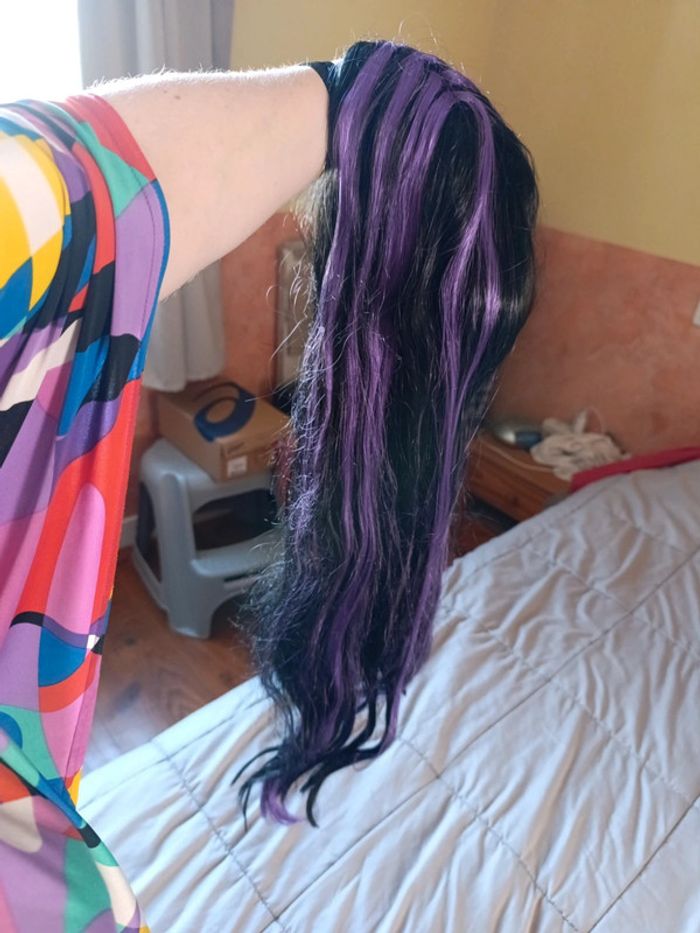 Perruque cheveux longs noir et violet - photo numéro 4