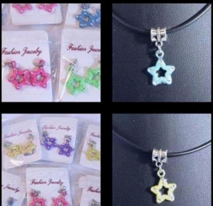 Ensemble colori au choix. Motif étoile Un joli ensemble pour les petites coquettes 1.50€ la paire de boucle d oreilles et le collier. Mélange possible au niveau des couleurs.