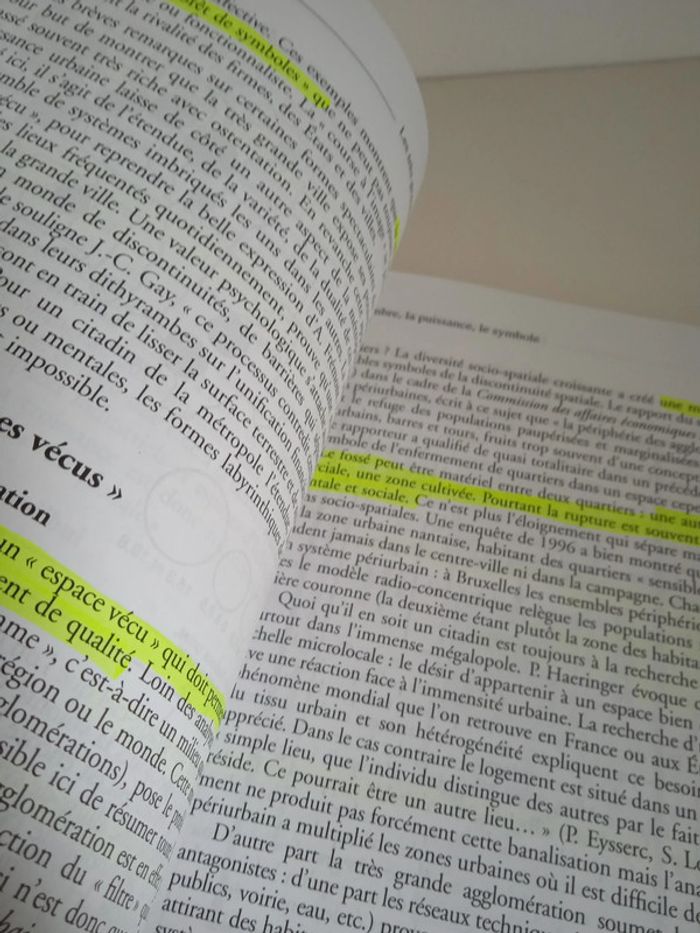 Livre avec quelques passages en fluo, sans gêne pour la lecture