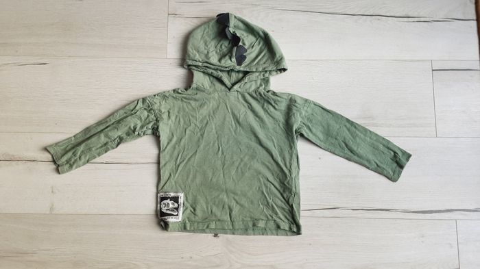 Vêtement garçon tee-shirt manches longues à capuche Vert motif dinosaure Kiabi 4 ans - photo numéro 1