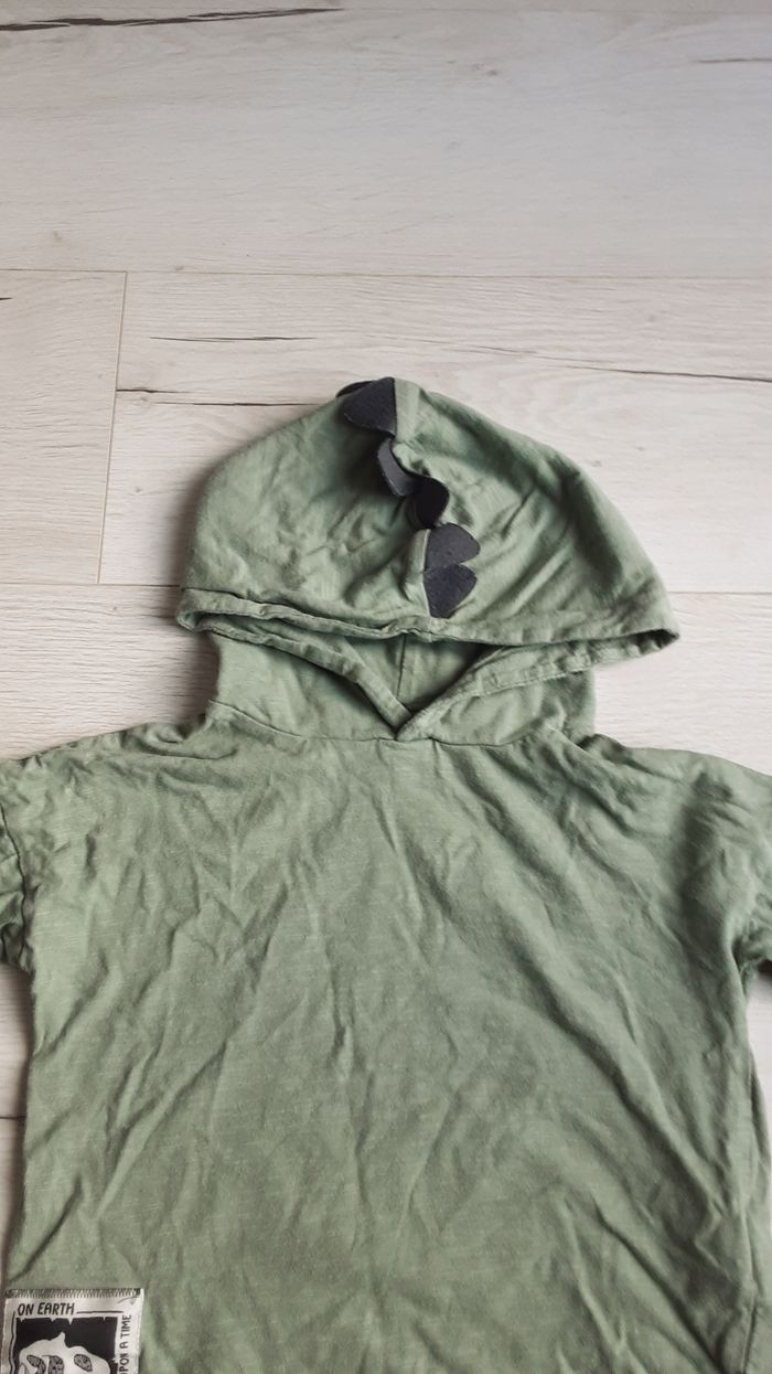 Vêtement garçon tee-shirt manches longues à capuche Vert motif dinosaure Kiabi 4 ans - photo numéro 3