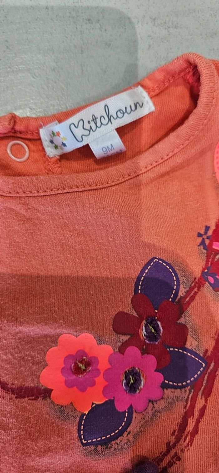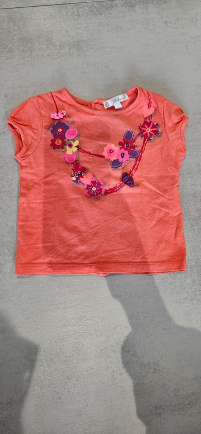 T-shirt fille manches courtes fleuri Ouverture pratique le long du dos par pression Porté mais sans imperfection Kitchoun taille 9 mois