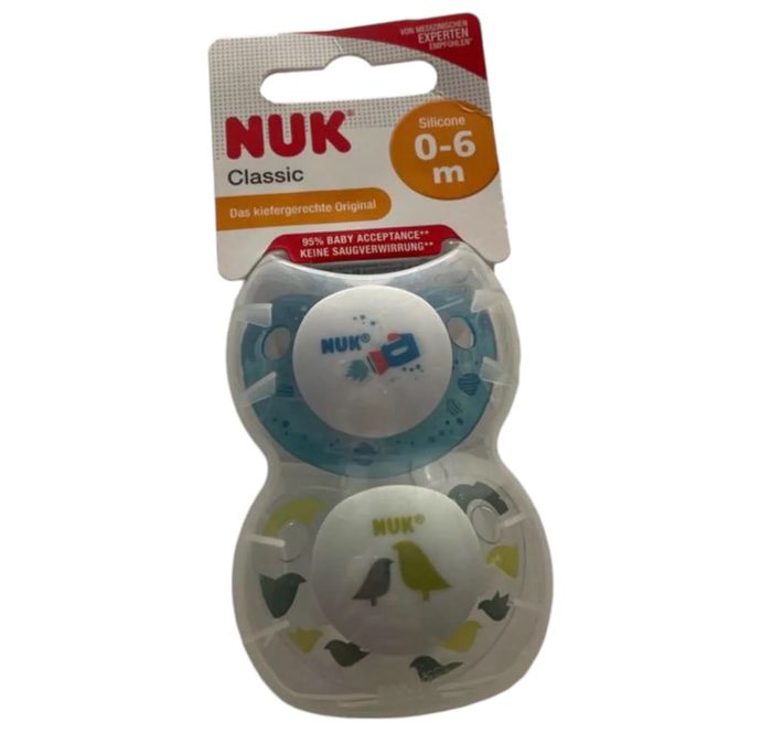 Pour les aventuriers en herbe, voici deux tétines NUK en silicone (6-18 mois), parfaites pour apaiser bébé avec style ! Une tétine sur le thème de l’espace pour les petits astronautes, et une autre avec des oiseaux pour les amoureux de la nature. Pratique et mignon, que demander de plus ?